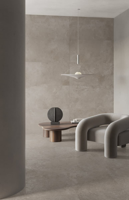 Rektifikované. Mrazuvzdorné. Dlažba v barvě taupe a v imitaci kamene o rozměru 59,5x119,8 cm a tloušťce 8,2 mm s matným povrchem. Vhodné do interiéru i exteriéru. S malými rozdíly v odstínu barev, struktury povrchu a kresby. PEI 5 – nejvyšší odolnost