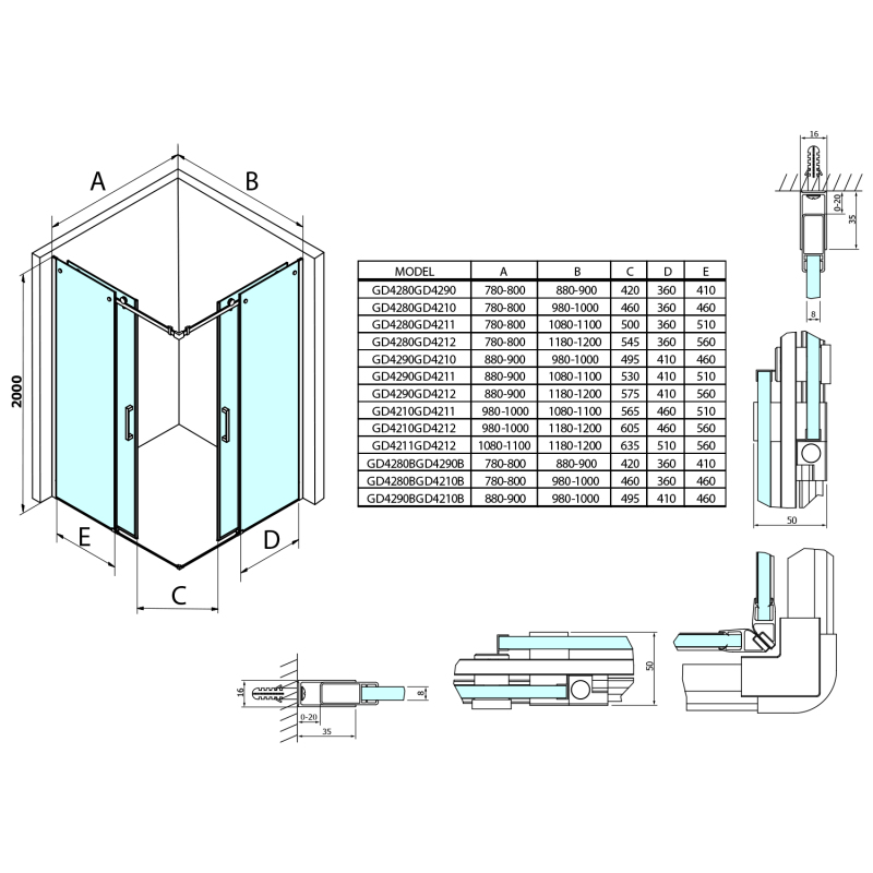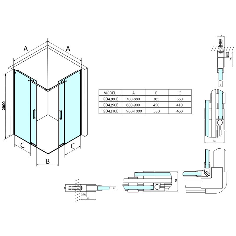 DRAGON BLACK sprchové posuvné dveře rohový vstup 1000 mm, čiré sklo GD4210B 55539