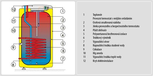 Provedení ohřívačů Nepřímotopné ohřívače k postavení na zem v objemech 100–250 litrů se smaltovanou nádobou a výkonným výměníkem pro ohřev teplé užitkové vody (TUV) z externího zdroje. Objem 200 litrů a 250 litrů se vyrábí ve variantě se dvěma výměníky pro připojení dvou zdrojů topné vody (např. plynový kotel + alternativní zdroj). Při propojení obou výměníku do série lze získat zdroj TUV o výkonu až 44 kW. Ohřívač je vybaven regulací teploty ohřevu TUV (termostat pro ovládání trojcestného ventilu nebo oběhového čerpadla ) pro napětí 230 V/50 Hz, pojistným ventilem a vývodem pro cirkulaci. Nejčastější využití Ohřev TUV celoročně topnou vodou z plynového kotle pro zapojení s přednostním ohřevem TUV. Pro typ OKC x NTRR je možná kombinace plynového kotle a alternativního zdroje energie nebo při propojení obou výměníku do série nepřímotopný zásobník pro kotle nad 24 kW.