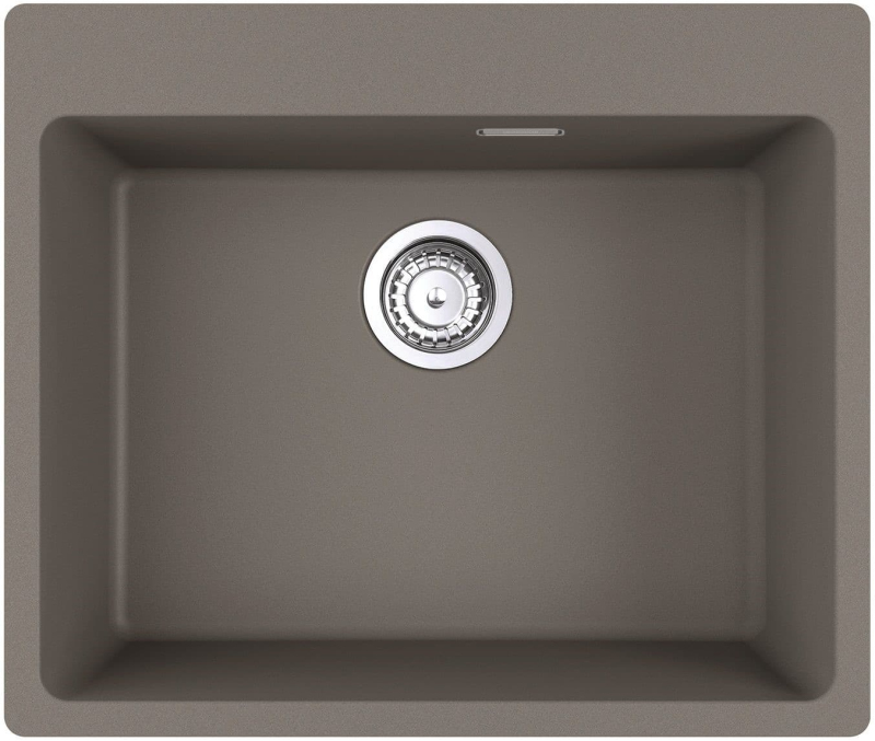 Hranatý granitový jednodřez, provedení Šedý kámen, rozměr 590 x 500 mm, vana 540 x 400 x 200 mm, horní montáž, minimálně 60 cm skříňka.