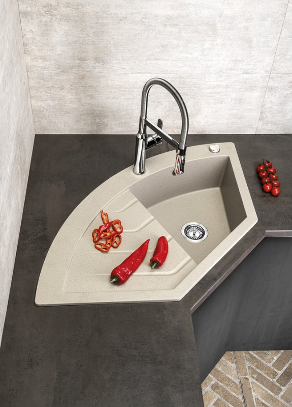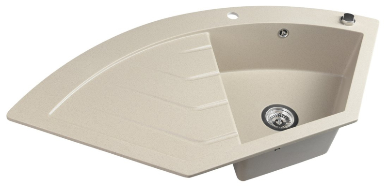 Granitový vestavný dřez rohový s odkapem, 114x57,5cm, béžová GR1932