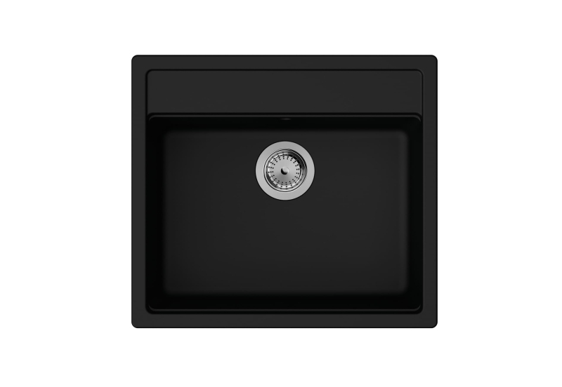 Jednodřez v barveném provedení grafitová černá s montáží na pracovní desku o rozměru 57x51 cm a hloubkou 18 cm.