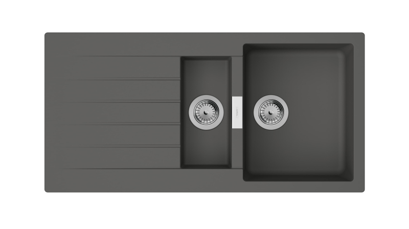 Jednodřez s vaničkou s odkapávačem v barveném provedení kamenná šedá s montáží na pracovní desku o rozměru 100x50 cm a hloubkou 19,5 cm.