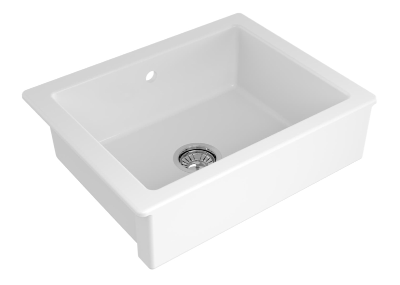 Keramický jednodřez bílý s montáží na pracovní desku o rozměru 62x49,5 cm a hloubkou 20,5 cm.