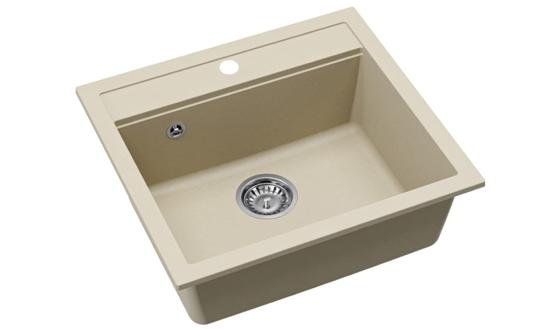 Granitový jednodřez jasmínový s montáží na pracovní desku o rozměru 56,5x51 cm a hloubkou 20 cm. Vhodný pro montáž do skříňky o šířce 60 cm.