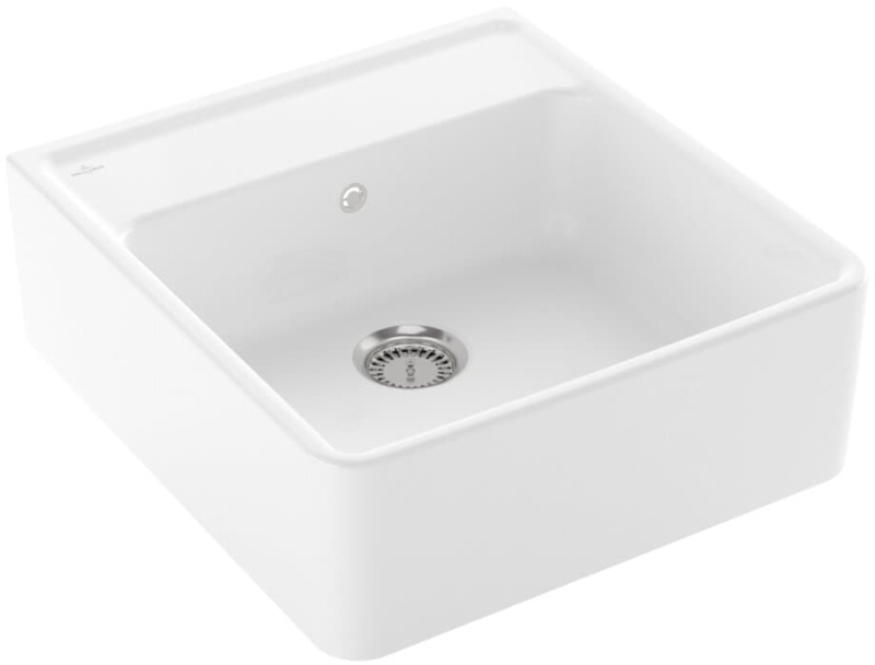 Keramický jednodřez bílý o rozměru 59,5x63 cm a hloubkou 18 cm.