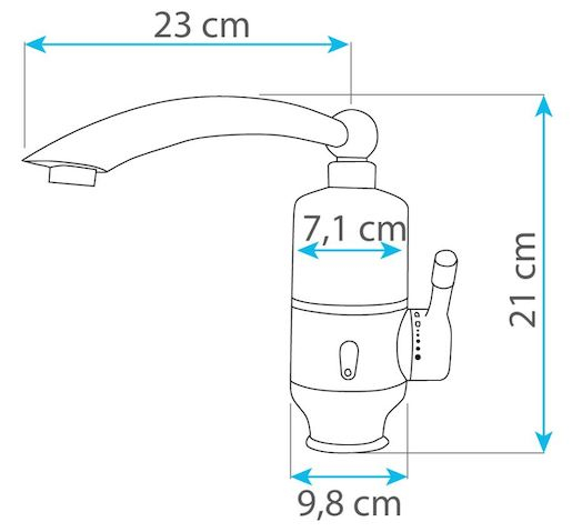 Páková stojánková dřezová baterie s elektrickým ohřevem vody. V bílé barvě. Výška baterie je 21 cm.