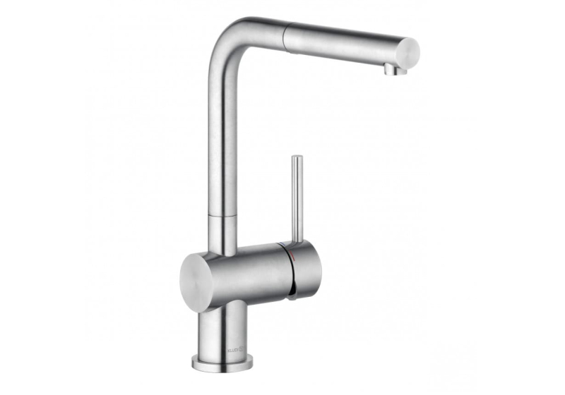 Dřezová baterie Kludi L Steel s vytahovací sprškou kartáčovaná ocel 45851F877
