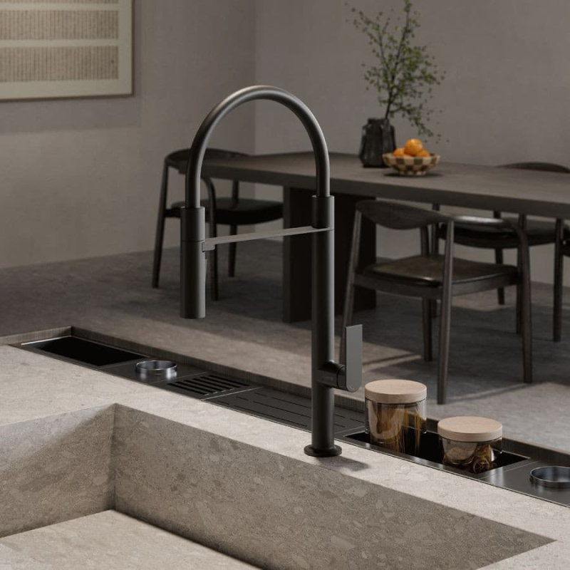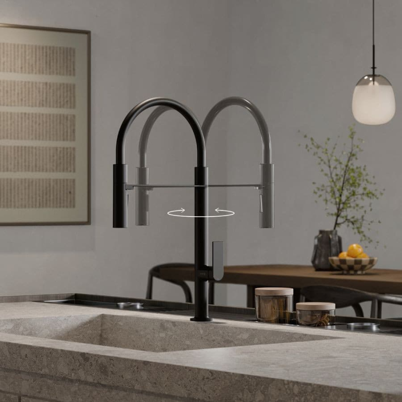 Dřezová baterie Kludi Qord Flex s otočným ramínkem, 2 proudy matná černá 568596675