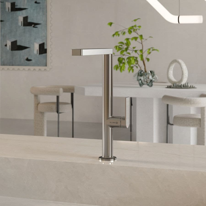 Dřezová baterie Kludi Qord s otočným ramínkem kartáčovaný nikl 56803N575