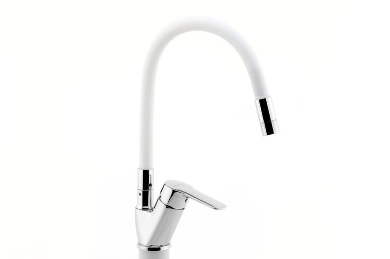 Páková stojánková dřezová baterie se silikonovým ramínkem v provedení bílá a chrom. Průtok baterie je 10,8 litrů/minutu. Výška baterie je 37,9 cm. V barevném provedení lesk.