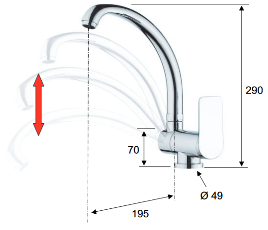 Otočná a sklopná dřezová stojánková baterie ARNO 42R vyniká vysoce kvalitním zpracováním a spolehlivou funkčností všech součástí a materiálů.