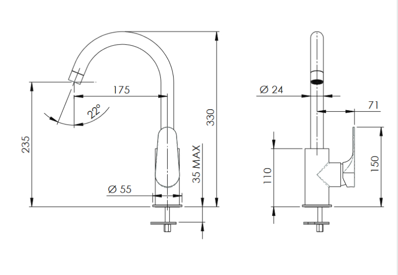 Přednosti dřezové stojánkové vodovodní baterie FONTI 7222: