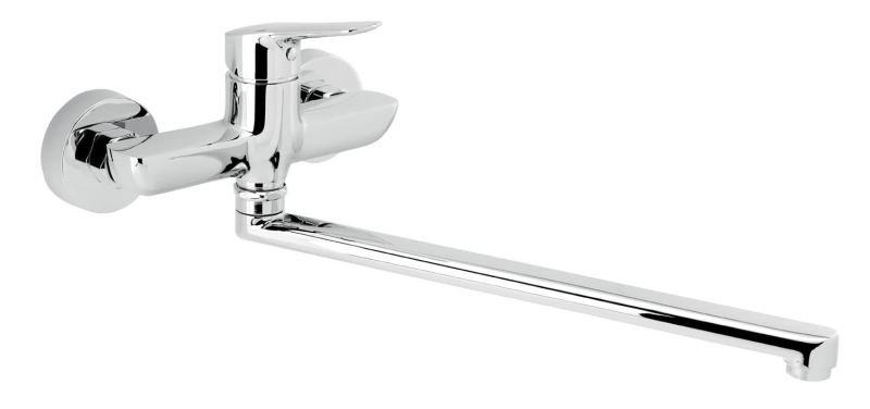 Páková nástěnná dřezová - umyvadlová baterie s otočným ramínkem v chromovém provedení. Průtok baterie je 6 litrů/minutu. Rozteč baterie 150 mm. V barevném provedení lesk.
