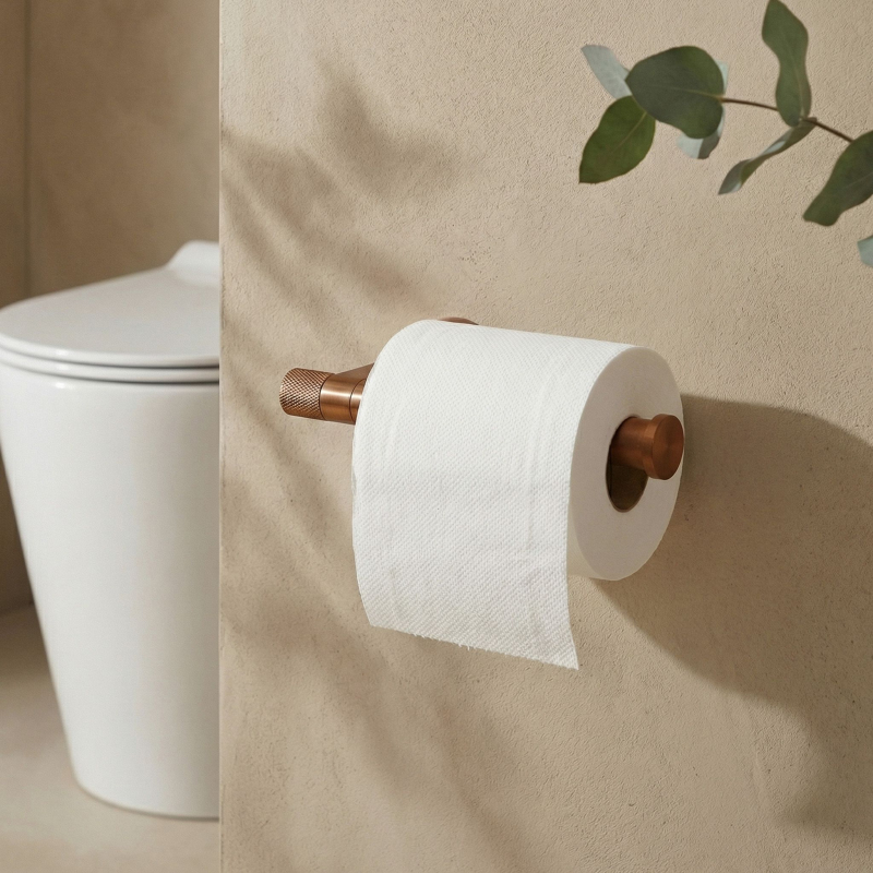 Dbejte na každý detail své koupelny s držákem na toaletní papír Ori v barvě kartáčované mědi. Tento elegantní a mimořádně funkční doplněk dokonale zapadá do nejnovějších trendů a kombinuje minimalistickou formu se šperkovým zakončením.Povrchová úprava kartáčovaná měď – teplý, matný odstín dodává interiéru prestižní charakter a kartáčovaný povrch usnadňuje udržování čistoty tím, že maskuje drobné stopy používání.Ozdobné vroubkování – konec držáku byl obohacen o precizní, rýhovanou strukturu. Tento decentní detail představuje jedinečnou ozdobu, která přitahuje pohled a zdůrazňuje vysokou kvalitu zpracování produktu.Robustní kovová konstrukce – vyrobení z vysoce kvalitního kovu zaručuje plnou stabilitu, odolnost a odolnost proti vlhkosti v koupelně.Pevná montáž na stěnu – držák se montuje na vruty, což zajišťuje maximální stabilitu a bezpečnost při každodenním používání.Kompletní kolekce – v naší nabídce najdete i další koupelnové doplňky ze série Ori, což umožňuje vytvořit ucelené a harmonické uspořádání celého interiéru.Výběrem držáku na papír Ori volíte ideální spojení moderního designu s napolehlivou funkčností.