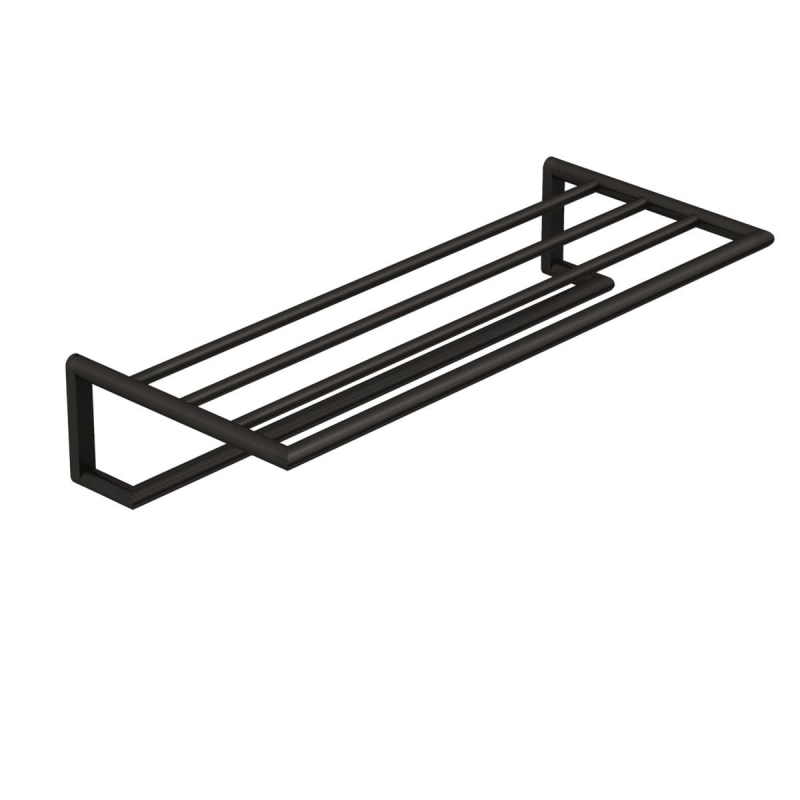 Držák ručníků v barevném provedení kartáčovaný gunmetal. Šířka tohoto koupelnového doplňku od značky Kludi je 61,8 cm. Montáž vrtáním.