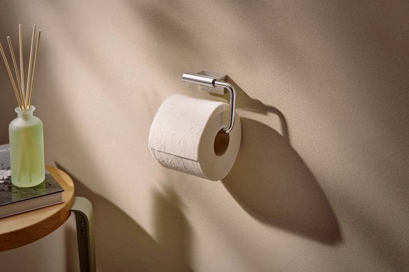 Držák toaletního papíru v chromovém provedení. Šířka tohoto koupelnového doplňku od značky Hansgrohe je 14,1 cm a je vyroben z materiálu kov. Montáž vrtáním.