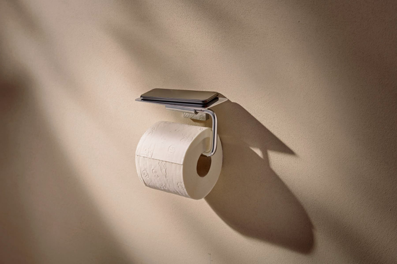 Držák toaletního papíru v chromovém provedení. Šířka tohoto koupelnového doplňku od značky Hansgrohe je 14,1 cm a je vyroben z materiálu kov. Montáž vrtáním.