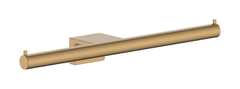 Držák toaletního papíru v barevném provedení kartáčovaný bronz. Šířka tohoto koupelnového doplňku od značky Hansgrohe je 30 cm a je vyroben z materiálu kov. Montáž vrtáním.