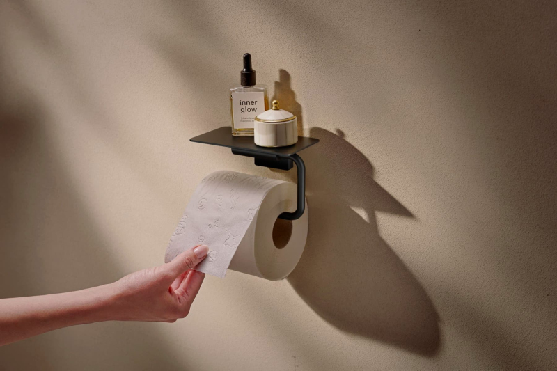 Držák toaletního papíru v barevném provedení matná černá. Šířka tohoto koupelnového doplňku od značky Hansgrohe je 14,1 cm a je vyroben z materiálu kov. Montáž vrtáním.