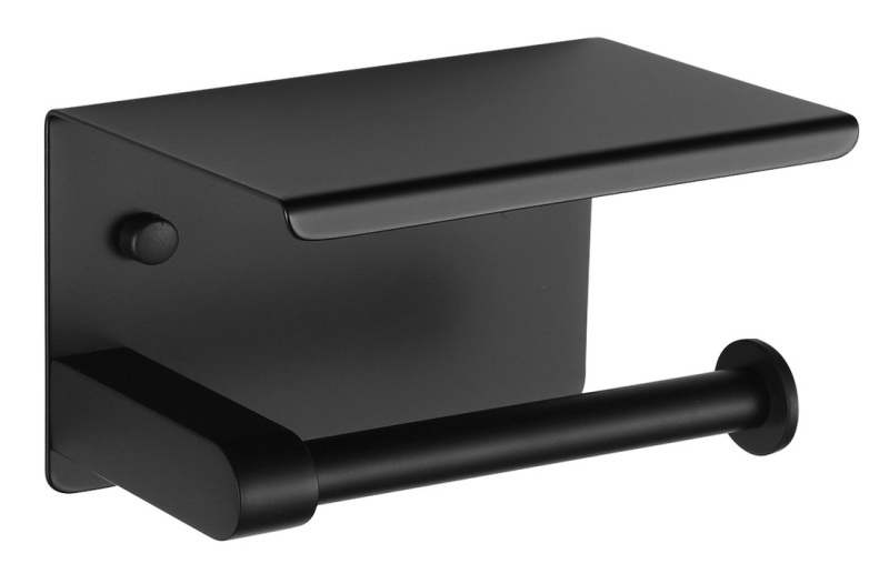 Držák toaletního papíru s poličkou, černá mat