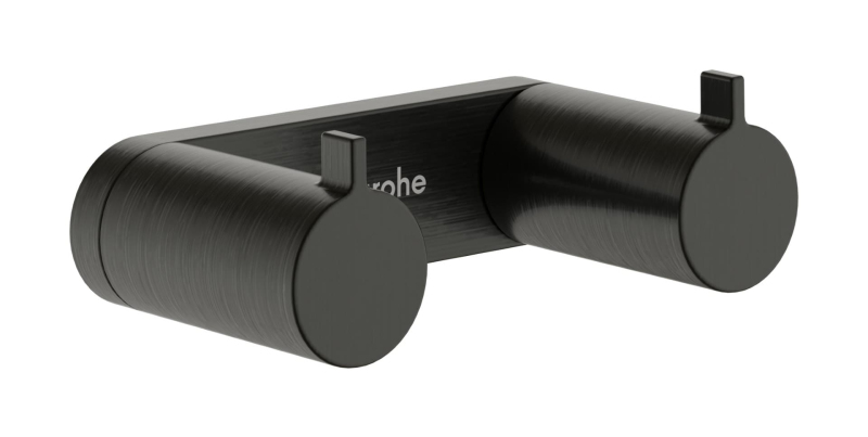 Dvojháček v barevném provedení černý chrom. Šířka tohoto koupelnového doplňku od značky Hansgrohe je 6,7 cm a je vyroben z materiálu kov. Montáž vrtáním.