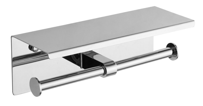 Dvojitý držák toaletního papíru s poličkou 30cm, chrom