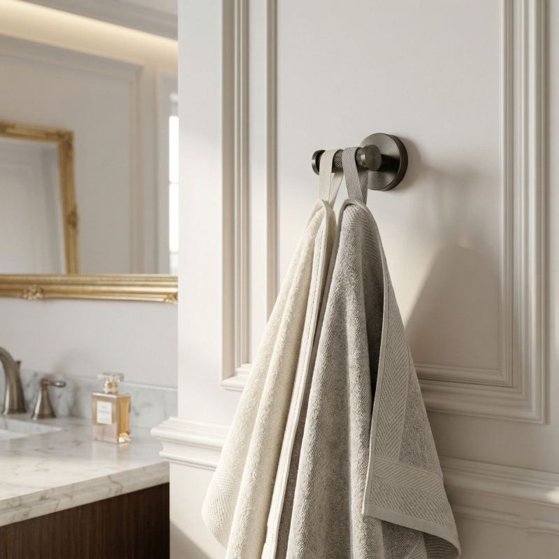 Dbejte na každý detail ve své koupelnové zóně díky dvojitému věšáku Modern v provedení Titan. Je to ideální spojení stylu a funkčnosti, které nadchne každého uživatele hledajícího elegantní a praktické koupelnové doplňky. Vyroben z nejkvalitnějších materiálů, věšák nejen podtrhne moderní design Vaší koupelny, ale také zajistí spolehlivost a odolnost na léta.Dvojitá konstrukce – umožňuje pohodlné zavěšení dvou ručníků nebo županů současně, což výrazně usnadňuje organizaci prostoru.Elegantní povrchová úprava Titan – dodává interiéru syrový, luxusní charakter a dokonale ladí s moderní podomítkovou armaturou.Vroubkovaná textura dříku – unikátní zdobení plní protiskluzovou funkci a zajišťuje pevné držení zavěšených textilií.Vysoká odolnost proti korozi – solidní kovová konstrukce zaručuje odolnost a neměnný vzhled i ve vlhkém koupelnovém prostředí.Solidní montáž na stěnu – zajišťuje maximální stabilitu a jistotu upevnění i při větším zatížení.Dvojitý věšák Modern je vynikající volbou pro lidi, kteří oceňují harmonii a moderní design ve svém interiéru. Perfektní v každém detailu, s jemným leskem Titan, bude jistě praktickou ozdobou Vaší koupelny a dodá jí třídu. Výběrem tohoto modelu sázíte na produkt, který spojuje luxusní estetiku s nekompromisním pohodlím při každodenním používání.