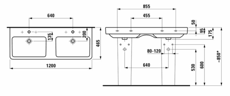 Dvojumyvadlo Laufen Pro S 120x46 cm dva otvory pro baterii H8149660001041