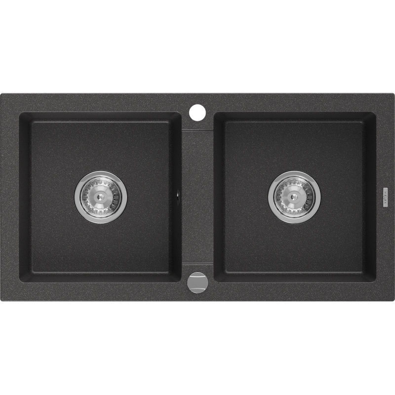Dvoudřezový žulový dřez Mexen Mario 820 x 436 mm, černá tečkovaná, chromovaný sifon - 6504822000-76