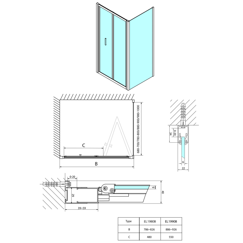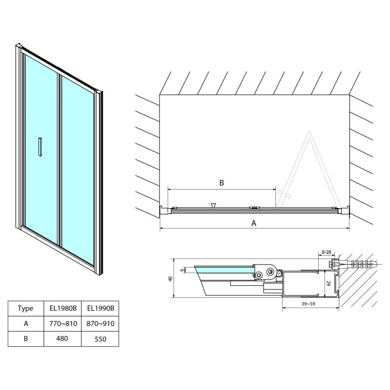 EASY BLACK sprchové dveře skládací 800mm, čiré sklo