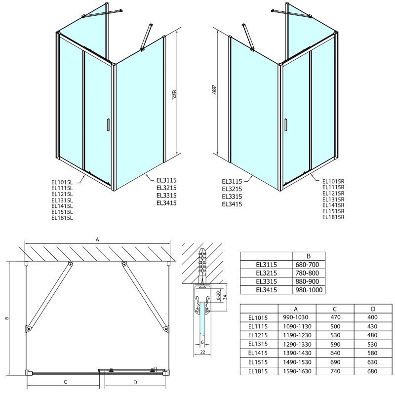 EASY třístěnný sprchový kout 1400x800mm, L/P varianta, čiré sklo EL1415EL3215EL3215