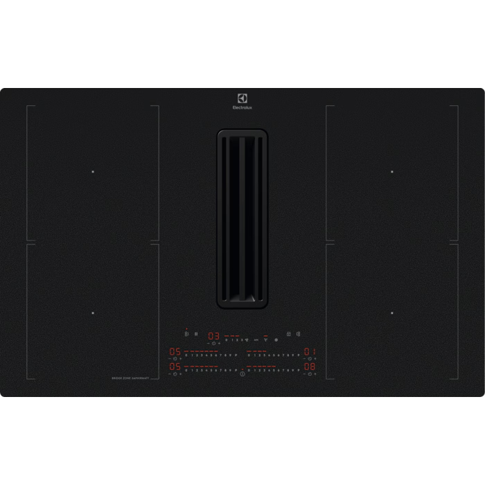 Vestavná indukční varná deska s odsavačem par Electrolux KCC84450CZ ve stylovém matném provedení SaphirMatt nabízí čtyři varné zóny s funkcí Bridge, rychlé nahození PowerBoost, dotykové ovládání DirectTouch a integrovaný odsavač, který eliminuje potřebu komínové digestoře. Ideální řešení pro moderní kuchyně s omezeným prostorem i pro otevřené dispozice.