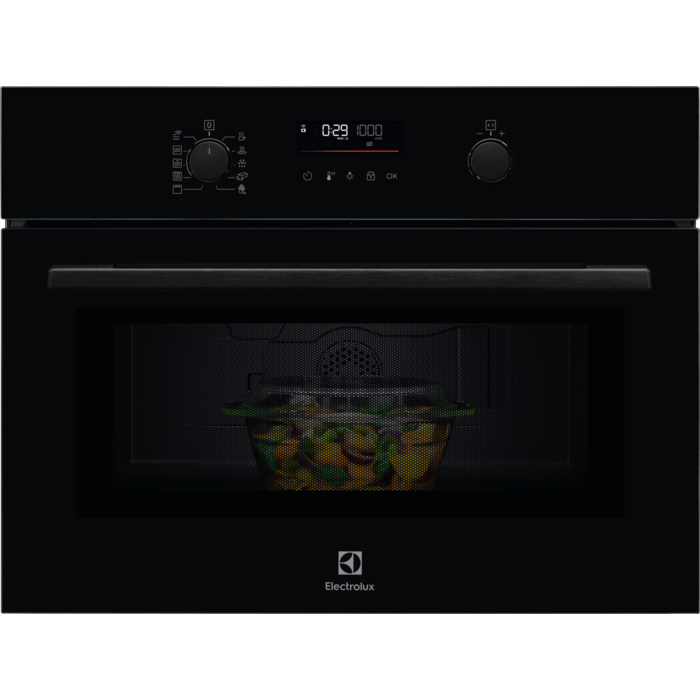 Vestavná kompaktní trouba Electrolux LVM6E46Z spojuje mikrovlnnou funkci a gril pro rychlé ohřívání, rozmrazování, pečení či zapečení. S LED displejem EXPlore, režimy jako popcorn či melting, dětským zámkem a zvukovým upozorněním – praktická a výkonná do každé kuchyně.