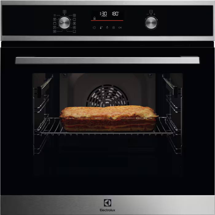 Vestavná trouba Electrolux EOF6P76BX s velkým objemem 72 l nabízí horkovzdušné pečení, parní funkci SteamBake a pyrolytické čištění pro snadnou údržbu. Díky rovnoměrné distribuci tepla, rychlému předehřevu a přehlednému displeji je ideální pro každodenní i náročnější vaření.
