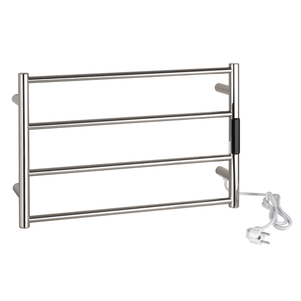 Pro menší prostory jsou ideální naše kompaktní topné žebříky o rozměrech 560x370 mm, které nabízíme v několika barvách a v lesklém i matném provedení. Tyto designové kousky efektivně suší vaše ručníky a dodávají prostoru moderní nádech. Lze je zapojit přímo do zásuvky nebo pomocí adaptéru elegantně integrovat do zdi, což zajišťuje flexibilní a čistou instalaci. TECHNICKÉ SPECIFIKACE Rozměr: 560 x 370 mm Výkon: 63 W Hloubka: 90 mm Hmotnost: 5 kg Materiál: nerezová ocel Nabízené barevné provedení: stříbrná lesk, bílá, zlatá lesk, zlatá mat, měděná zlatá lesk, měděná zlatá mat, grafitová, černá Stupeň krytí (IP): IPx4 Délka přívodního kabelu: cca 1300 mm MONTÁŽ A PŘIPOJENÍ Způsob montáže: nástěnná montáž Typ připojení: do el. zásuvky - sušák je vybaven přívodním kabelem s koncovkou pro zapojení do zásuvky o délce 130 cm pevné připojení do elektroinstalace do zdi - pomocí adaptéru je možné pevné připojení do elektroinstalace. Adaptér není součásti balení a je nutné jej pořídit samostatně. Adaptér nabízíme ve stejných barvách jako jsou el. sušáky. OVLÁDÁNÍ A FUNKCE Digitální termostat Regulace teploty: 45 °C, 50 °C a 55 °C. Časovač: 1–9 hodin (nastavitelný po hodinách) Dlouhým stiskem tlačítka on/off se zařízení zapíná nebo vypíná ZÁRUČNÍ PODMÍNKY 2 roky na funkčnost 2 roky na povrchovou úpravu