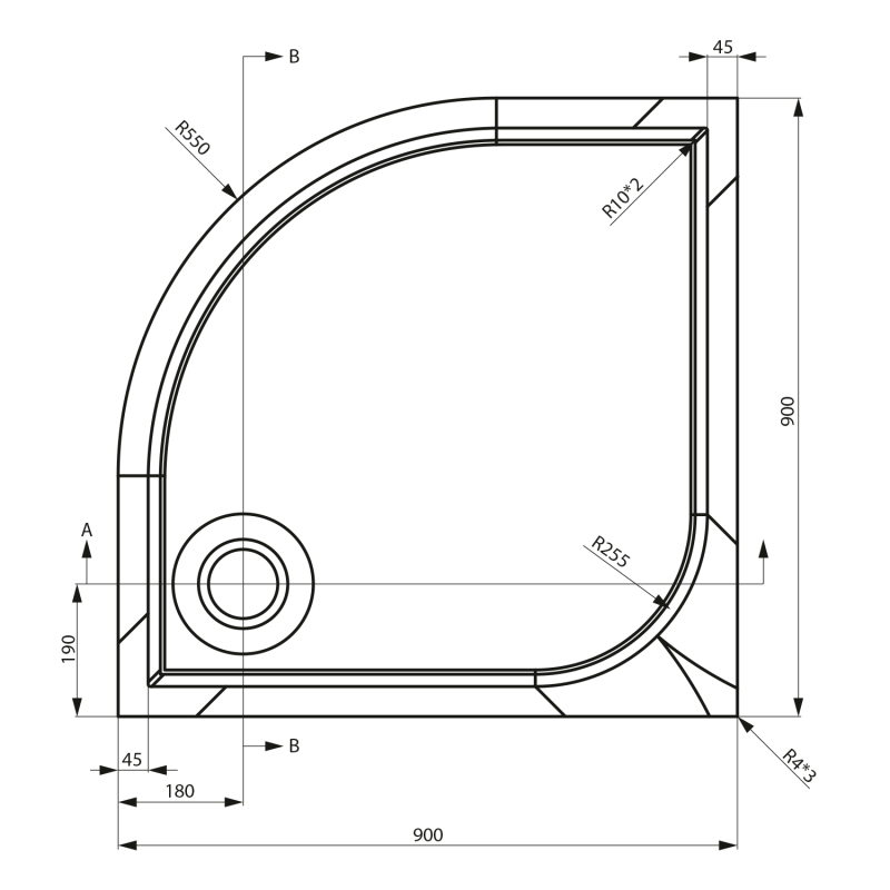 ERIKA sprchová vanička z litého mramoru, čtvrtkruh 90x90cm, R550, bílá 25189