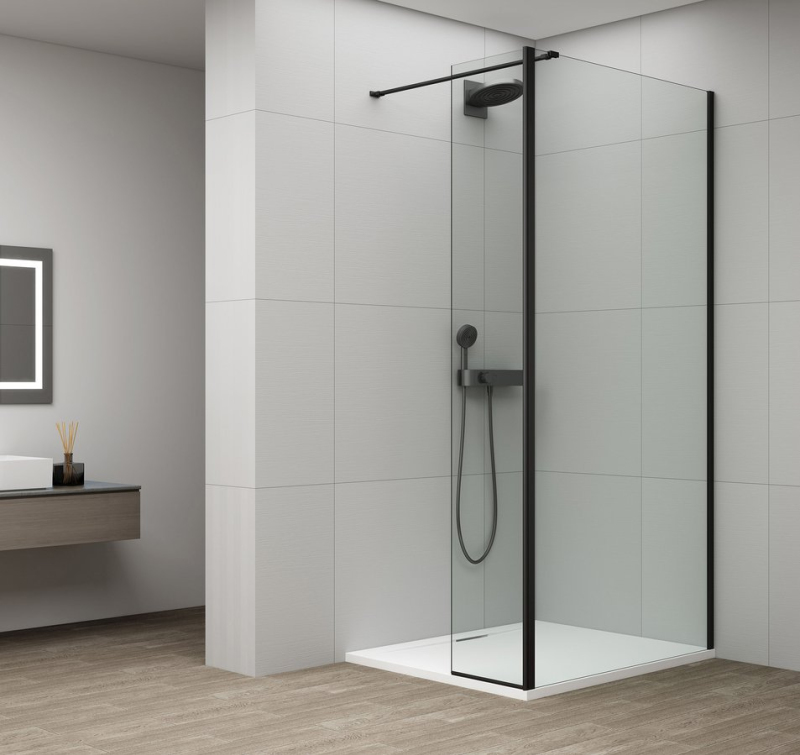ESCA BLACK MATT sprchová zástěna, fixní sklo 900 mm, otočný panel 600 mm