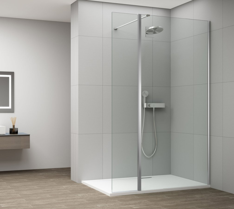 ESCA CHROME sprchová zástěna, fixní sklo 1200 mm, otočný panel 300 mm