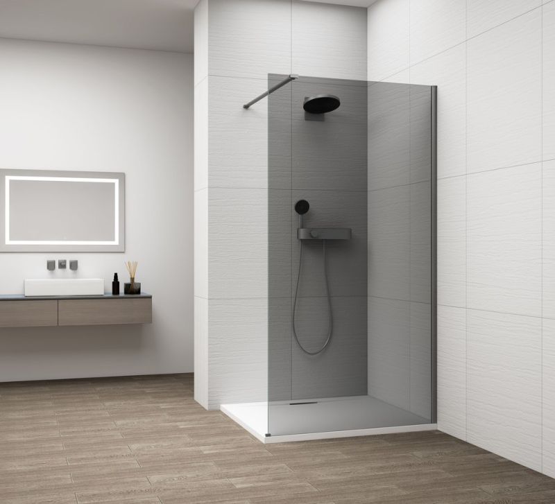 ESCA GUN METAL jednodílná sprchová zástěna k instalaci ke stěně, kouřové sklo, 1400 mm