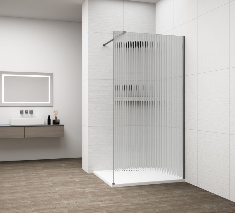 ESCA GUN METAL jednodílná sprchová zástěna k instalaci ke stěně, sklo Flute, 1400 mm