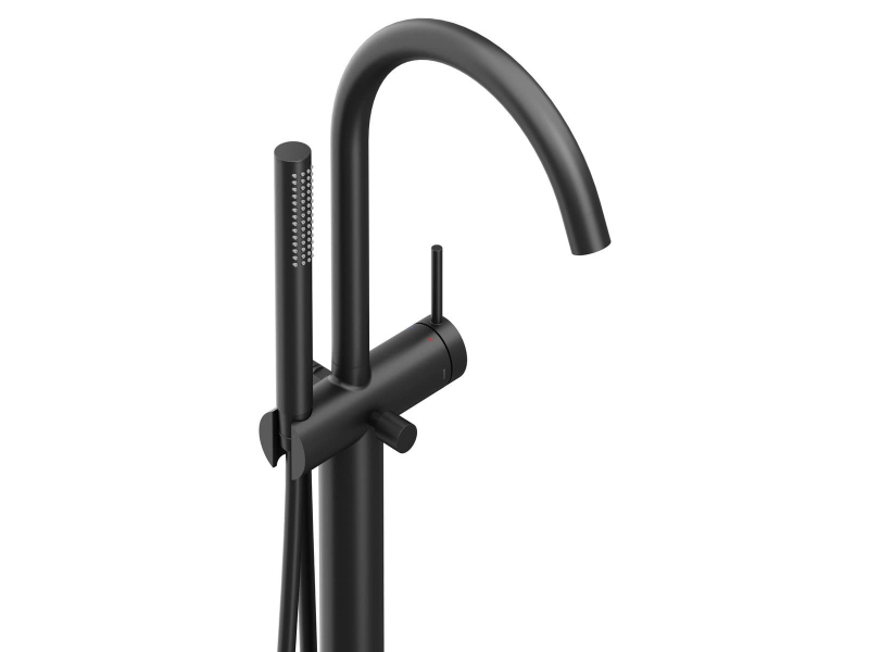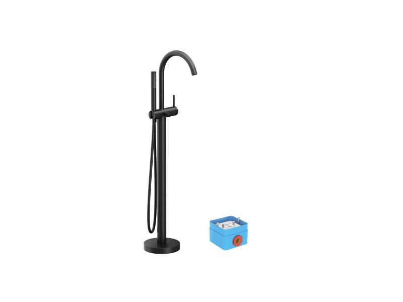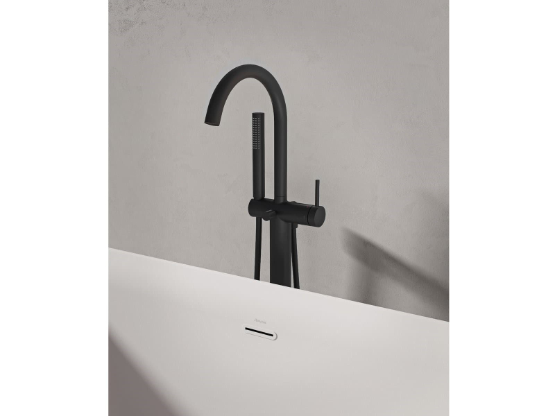 Vanová baterie do podlahy Freedomse sprchovým setem, určená pro R-box. V černém provedení.