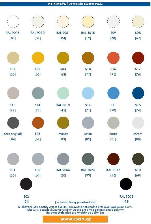 Materiál: ocelové profily D 30x35 mm, ocelové trubky ø 20 mm Připojovací závity: 4xG1/2" Zkušební přetlak: 1,3 MPa Max.provozní přetlak: 1,0 MPa Max.provozní teplota: 110 °C Počet trubek: 15, 20, 24, 32, 38 Koupelnové žebříky ISAN jsou konstruovány převážně s ocelových profilů a trubek. Určena jsou především k vytápění koupelen, obytných prostor a pro provoz ve všech otopných soustavách v individuální a hromadné výstavbě, ve kterých se používá pouze otopná (upravená voda) s nuceným oběhem. POVRCHOVÁ ÚPRAVA Povrchová úpravaje provedena s maximálním ohledem na životní prostředí a zajišťuje dlouhodobou korozní a mechanickou odolnost a hygienickou nezávadnost. Radiátory jsou nejprve opískovány a odmaštěny, následně povrstveny železitým fosfátem a nalakovány. Ke konečné úpravě je používán vypalovací práškový epoxy-polyesterový lak. Základní odstín sněhově bílá barva RAL 9016. Další odstíny viz. „Orientační vzorník barev ISAN“ s příplatkem dle typu barvy. Chromová povrchová úprava je možná pouze u vyznačených typů. Chrom je nanášen na hotový výrobek galvanickou cestou. Cenové rozvržení příplatků za barvy: RAL 9016, 9010, 9006 – 0% RAL 9001, 1015, 9005, 7024, 6019, 8017 – 10% S 06, 07, 08, 09, 10, 11, 12, 13, 14, 15, 16, 17, 18, 19, 20 – 20% S 01, 02, 03, 04, 05 – 30% U tohoto typu koupelnového žebříku je možná chromová povrchová úprava. (dostupnost na dotaz – cena je stanovena u různých druhů žebříků individuálně) Tento typ koupelnového žebříku je možno dodat v provedení elektro – žebřík je naplněn kapalinou s nemrznoucí směsí s antikorozními účinky a vybaven topnou tyčí doporučeného výkonu. Funguje nezávisle na centrálním topném systému. (dostupnost na dotaz – cena je stanovena dle použité topné tyče u jednotlivých žebříků)