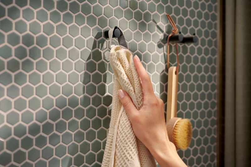 Háček v barevném provedení matná černá. Šířka tohoto koupelnového doplňku od značky Hansgrohe je 1,7 cm a je vyroben z materiálu kov. Montáž vrtáním.