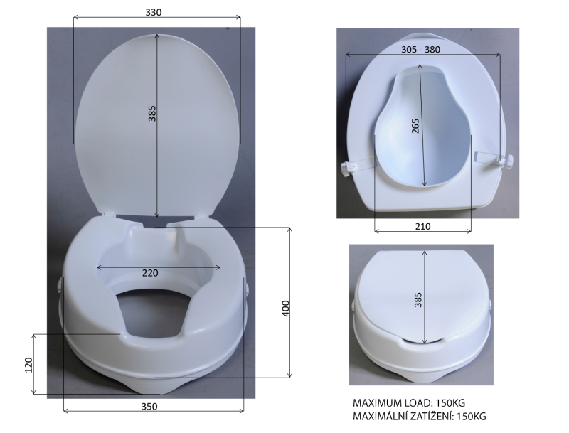 HANDICAP WC sedátko zvýšené 10cm, černá