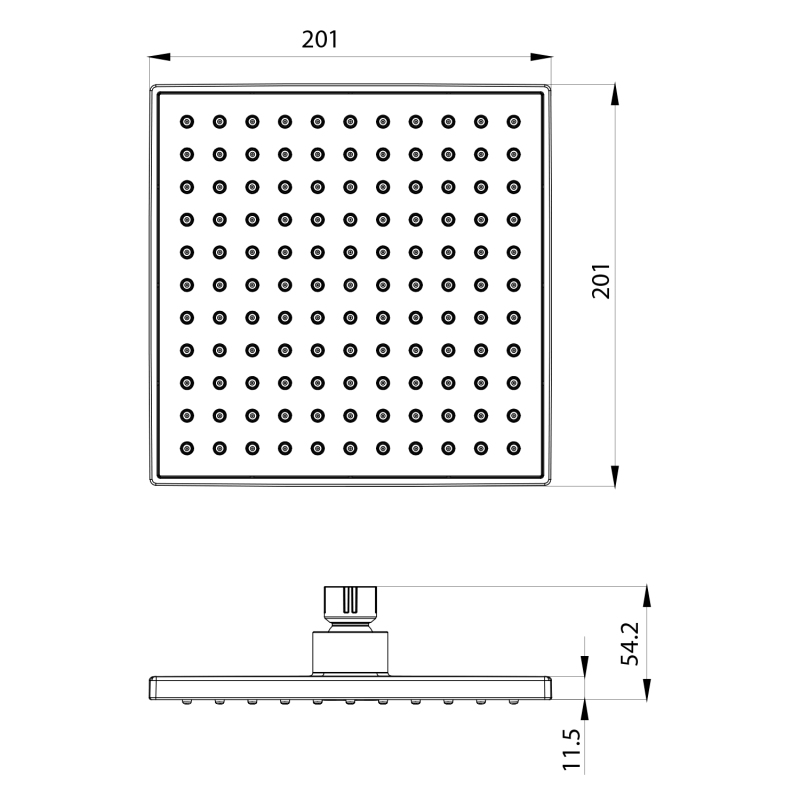 Hlavová sprcha, 200x200mm, ABS/černá mat