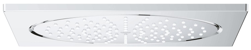 Hlavová sprcha včetně sprchového ramena s montáží na strop s 1 funkcí. Průtok 9,5 litrů/minutu. V hranatém designu.