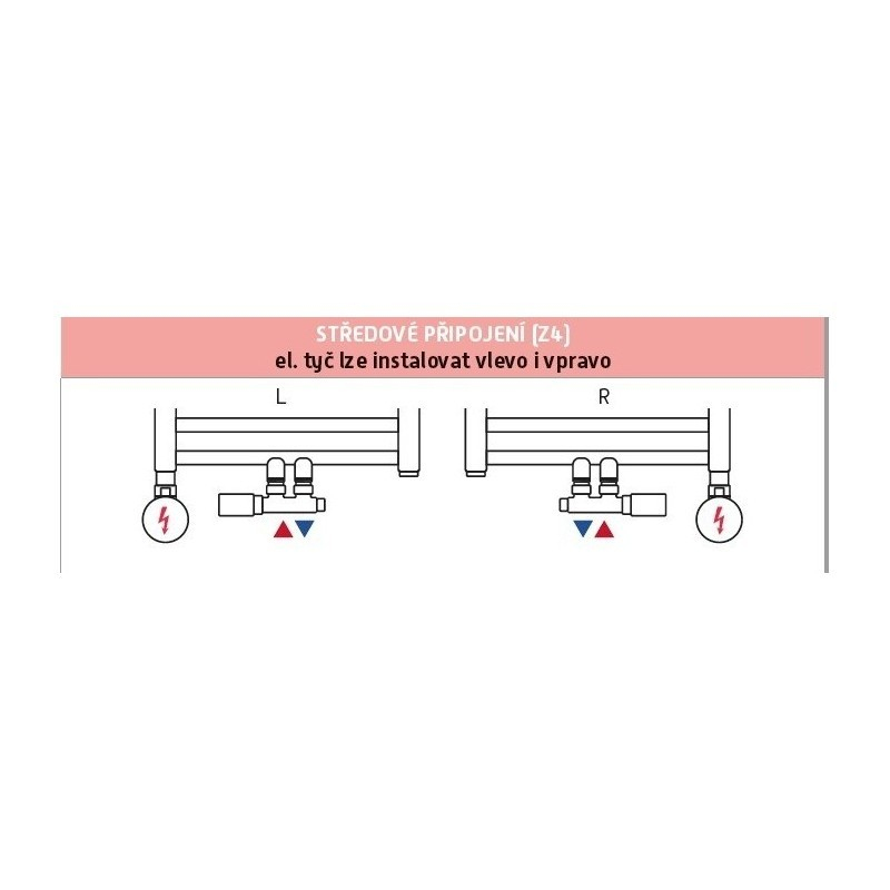 Pro kombinovaný provoz u klasických radiátorů musíte objednat sadu + el. tyč v doporučeném výkonu, kterou můžete instalovat vlevo nebo vpravo do radiátoru.