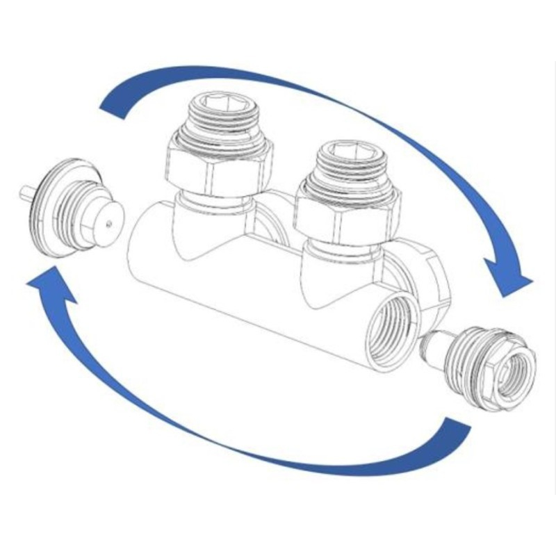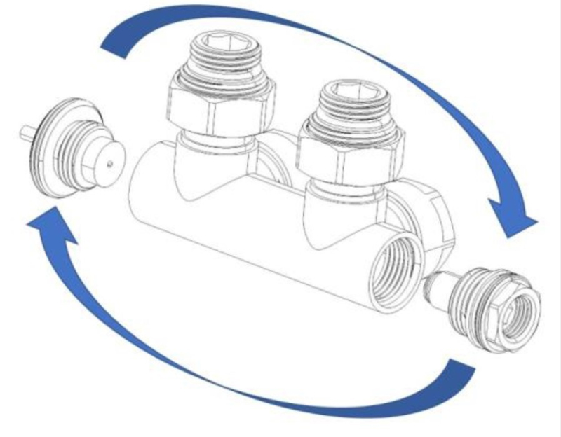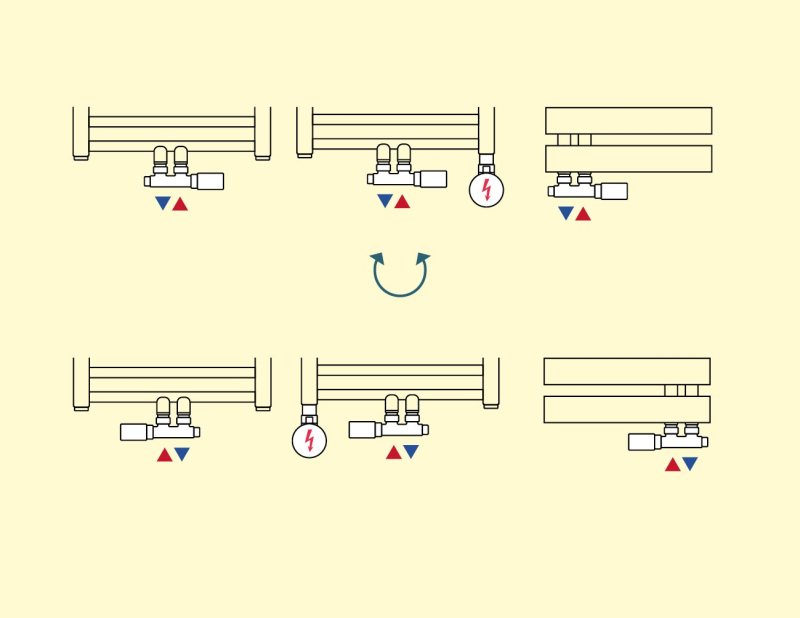 Pro kombinovaný provoz u klasických radiátorů musíte objednat sadu + el. tyč v doporučeném výkonu, kterou můžete instalovat vlevo nebo vpravo do radiátoru.