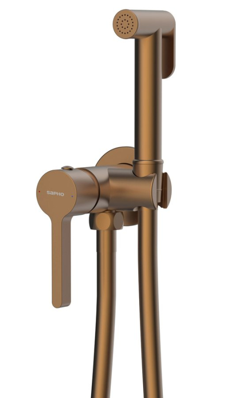 ICONIC podomítková bidetová baterie se Stop sprškou, kulatá, měď mat